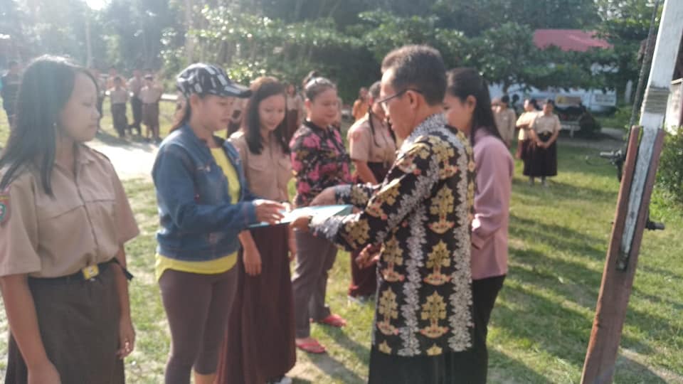 Pelaksanaan pembelajaran tahun pelajaran 2018/2019 telah berakhir dengan dilaksanakannya pembagian rapor kenaikan kelas untuk peserta didik kelas VII dan VIII. Kegiatan tersebut dilaksanakan pada Sabtu, 29 Juni 2019 di lapangan SMPN 3 Gunung Timang dengan suasana khidmat. Tidak hanya para guru dan siswa yang hadir di kegiatan tersebut, tetapi juga mengundang seluruh orang tua/wali peserta didik kelas VII dan VIII. Dalam kesempatan ini, Pak Loneng, S.Pd. selaku kepala sekolah memberikan piagam penghargaan untuk peserta didik berprestasi dan menyampaikan pesannya kepada peserta didik untuk terus meningkatkan hasil belajarnya di semester depan tentunya dengan jenjang yang lebih tinggi yang memiliki tingkat kesulitan yang berbeda. “Untuk peserta didik kelas VII dan VIII yang di semester depan menjadi kelas VIII dan IX diharapkan tidak pernah berhenti belajar dan berpuas diri dari hasil belajar yang didapat di semester ini. Khususnya untuk kelas IX, banyak tantangan baru yang harus dipersiapkan dari sekarang untuk menghadapi USBN dan UNBK. Harapannya ketika nanti memperoleh ijazah kelulusan dari sini, kalian bisa berbangga dengan nilai yang didapatkan”, ujar beliau. SMPN 3 Gunung Timang sendiri masih terus berbenah, berkembang, dan berusaha meningkatkan kualitas lulusan agar memiliki imtaq dan iptek yang baik untuk menyongsong masa depan yang gemilang.