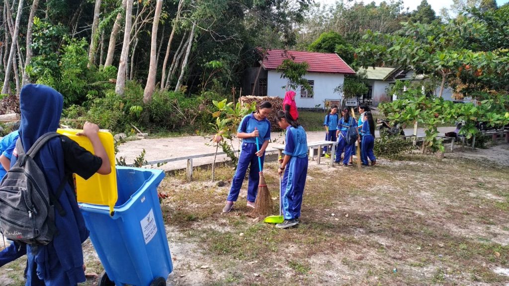 Ketapang, Gunung Timang – “kebersihan merupakan sebagian dari Iman”, tentu kalimat tersebut tidak asing lagi bagi kita. Tidak dipungkiri lagi bahwa lingkungan yang bersih dan asri berdampak pada kesehatan. Begitu juga iman seseorang tentunya dipertanyakan apabila masih gemar melakukan kerusakan dan membuat lingkungan menjadi kotor. SMPN 3 Gunung Timang melalui kegiatan Jumat Bersih yang dicetuskan oleh Pak Muhammad Amin Murtadho atau yang akrab dipanggil Pak Amin guna menjaga dan meningkatkan kebersihan sekolah. Melalui kegiatan ini pula, sekolah mengharapkan kesadaran dan pemahaman siswa akan pentingnya hidup bersih dan sehat coba ditanamkan agar menjadi kebiasaan.