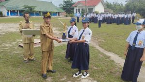 Pada kesempatan tersebut juga diserahkan simbolis juara Lomba Menyanyi Lagu Dangdut tingkat kecamatan Gunung Timang atas nama Hamidah, siswa kelas 8.